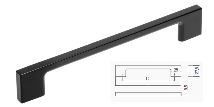 Kód produktu: UZ81909620P2.47 Celokovová jednodílná úchytka ze slitiny zinku, galvanicky pokovená či lakovaná, balená včetně šroubků M4 pro uchycení. Rozměry: r.96 d.129 š.8,5 v.27,5 mm