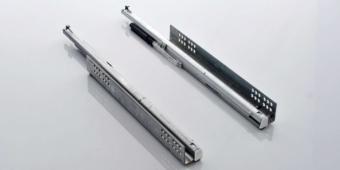 Skrytý plnovýsuv HETTICH Quadro V6 s tlumeným dovíráním, nosný prvek pro VK (výsuvné koše) a CVK (čelní výsuvné koše), u košů není součástí balení a je nutné jej objednat samostatně.