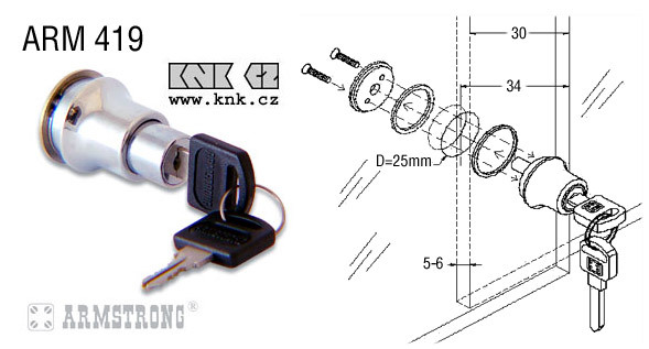 Kód produktu: 54410.03 Celokovový zámek na dvojitá posuvná skleněná dvířka do díry pr.25, galvanicky pokovený, dodávaný včetně dvou cylindrických klíčů a zarážky. Rozměry: d.40 š.29 v.29 mm