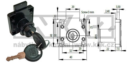 Kód produktu: 101703.03 Celokovový zásuvkový zámek galvanicky pokovený, dodávaný v krabičce včetně dvou kusů cylindrických klíčků. Rozměry: d.40 š.30 v.40