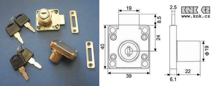Kód produktu: 101202.03 Celokovový zásuvkový zámek galvanicky pokovený, dodávaný v krabičce včetně dvou kusů cylindrických klíčků. Stejný uzávěr - jednotný klíč. Rozměry: d.40 š.29 v.40