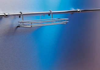 Kód produktu: K 001.1 30.80 Závěsný drátěný koš vyrobený z galvanicky chromované oceli, pro odkládání kuchyňských předmětů. Rozměry: d.259 š.155 v.80 mm