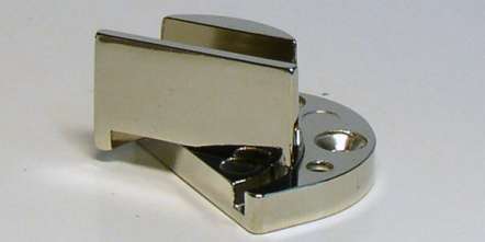 Kód produktu: 06412000.01 Celokovový vysazovací dvoudílný závěs na vložená skleněná dvířka maximální tloušťky 5mm, ze slitiny zinku, galvanicky pokovený. Rozměry: d.40 v.21 š.20 mm