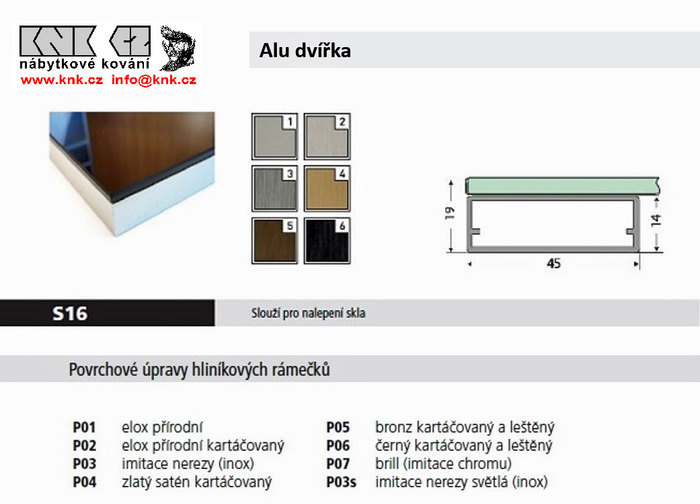 Široký rámeček pro nalepení výplně, š.45x14, bez pohledové hrany, pro nalepení libovolné neprůhledné výplně. Úchytky vrtat skrz rámeček a sklo, 10-40mm od hrany. Standardní panty, výklopy, plynové vzpěry jako u DTD dveří. Maximální rozměr rámečku je 2500x600mm, pro rámečky z plochou větší než 1,2m2 je třeba přidat dělící příčku.
